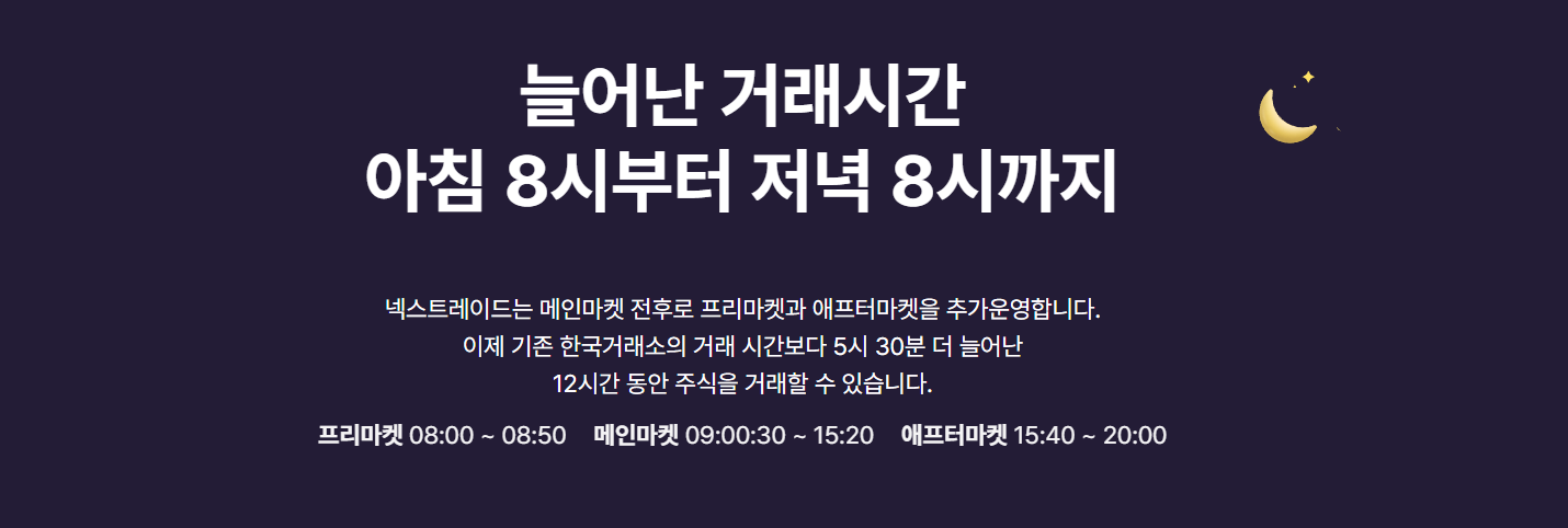 넥스트레이드는 아침 8시부터 밤 8시까지 총 12시간 거래 가능해요.